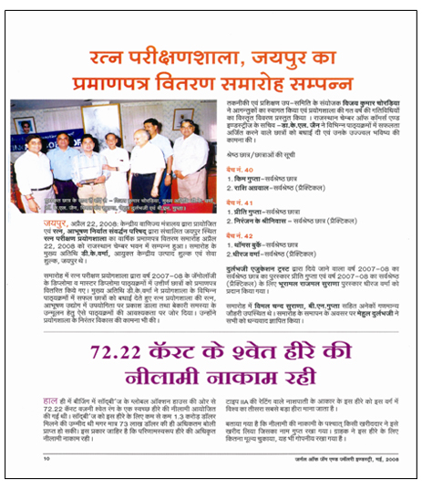 Keeping in mind trend of the market we started our Gem Testing Lab in Jaipur in April 2011.We are giving the best quality gem testing to everyone within in a common man’s reach, so that the people can judge by themselves the quality they are buying. Our faculty is one of the best in the city of Gems which tests each and every specimen to the utmost standards. We have the ultra modern equipments for gem testing and the fastest medium to send gem identification report to the customers just by a click through their e-mails. Customers can verify their reports on the company’s website as well as by scanning QR-code on Identification Report.